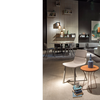 Giulio Iacchetti ha presentato la sedia Aileron, dall’aspetto familiarmente nordico, nasce come omaggio a Eames e alle riflessioni intorno al ruolo della seduta ergonomica, convenzionalmente usata per l’ufficio, ma raramente applicata alle tipologie da soggiorno. Il risultato: uno schienale articolato, svincolato dalla scocca ma collegato ad essa attraverso due biscotti di acciaio armonico, così li ha definiti il progettista, che assecondano il movimento della schiena in appoggio.