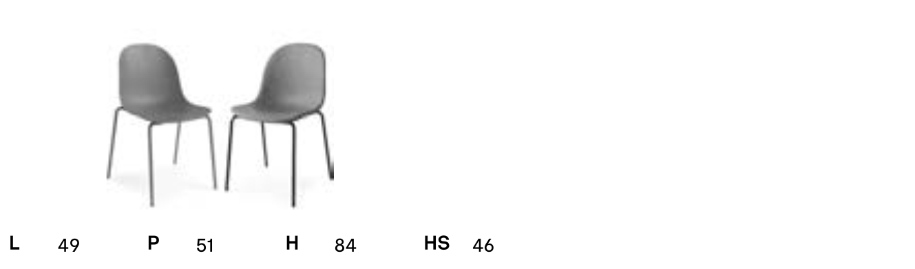 Le strutture verniciate ROSSO OSSIDO OPACO, GRIGIO OPACO, TORTORA OPACO, TIMO OPACO, hanno sempre il sedile PP in tinta.
