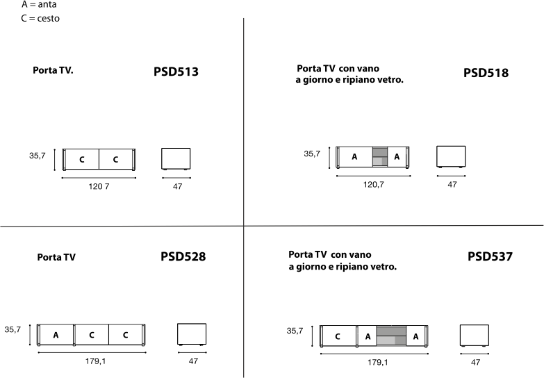 - scegliendo i piedi in metallo h22cm l'altezza finita del mobile sarà h56cm