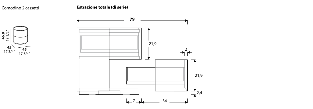Una delle peculiarità di Nadir è il sistema di apertura dei cassetti, pensato per un utilizzo pratico ma raffinato: il primo cassetto si apre tramite una presa frontale ed è dotato di chiusura assistita, mentre i cassetti inferiori utilizzano un comodo sistema push-pull, che ne esalta l’essenzialità formale.