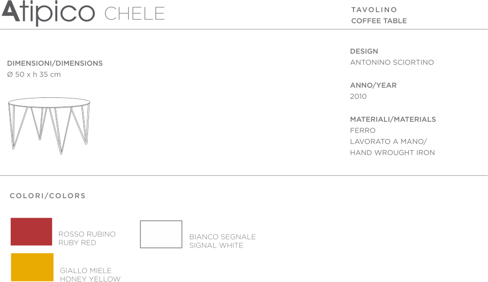 Struttura in ferro zincato lavorato a mano, verniciatura a polvere.