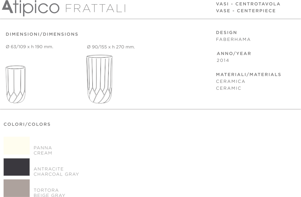 Frattali è una collezione sviluppata per Atipico, una serie di ceramiche incise e decorate che rappresenta un punto d'incontro tra pezzo unico realizzato a mano e produzione seriale.