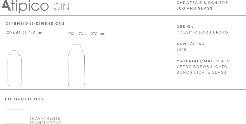 Caraffa in vetro borosilicato Gin, design Massimo Barbierato