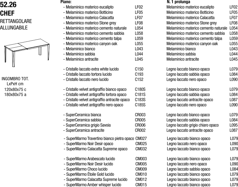Bontempi CHEF 120 |tavolo allungabile|