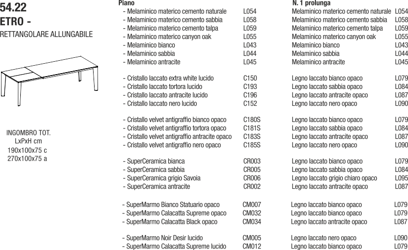 Bontempi ETRO rettangolare 190 |tavolo allungabile|