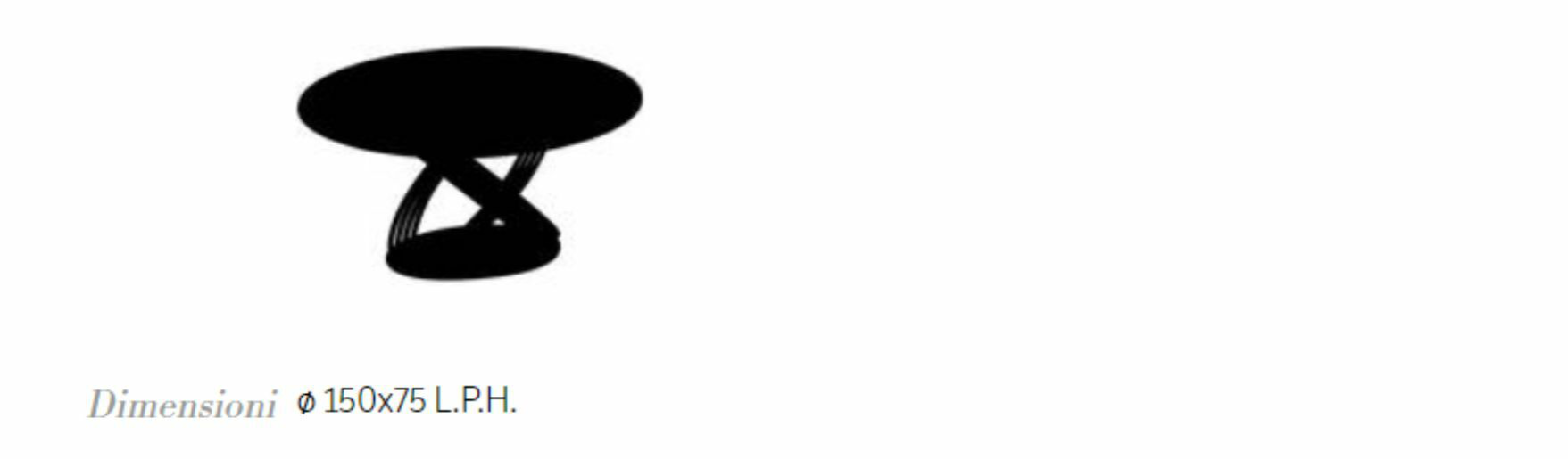 Tavolo rotondo fisso con struttura in Acciaio laccato. Base in Acciaio laccato, Legno impiallacciato o SuperMarmo. Piano in Legno impiallacciato, Cristallo, Cristallo Antigraffio, SuperMarmo.