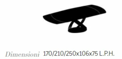 Tavolo allungabile a botte, con struttura in Acciaio laccato. Base in Acciaio laccato, Legno impiallacciato o SuperMarmo. Piano in Cristallo, Cristallo Antigraffio.