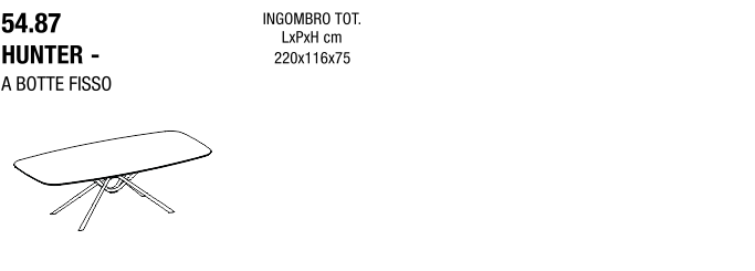 Hunter è un tavolo dal carattere deciso e scultoreo, che si distingue per la sua architettura dinamica e il perfetto gioco di simmetrie. La struttura in metallo è composta da due elementi identici, sagomati con precisione geometrica: uno inferiore, che funge da base e definisce la verticalità del volume, e uno superiore, che si interseca con il primo in un incastro calibrato e visivamente potente, sostenendo con eleganza il piano. Il design grafico e tridimensionale rende il tavolo protagonista dello spazio, perfetto per ambienti contemporanei che richiedono oggetti dal forte impatto estetico ma dal linguaggio raffinato.MODELLO