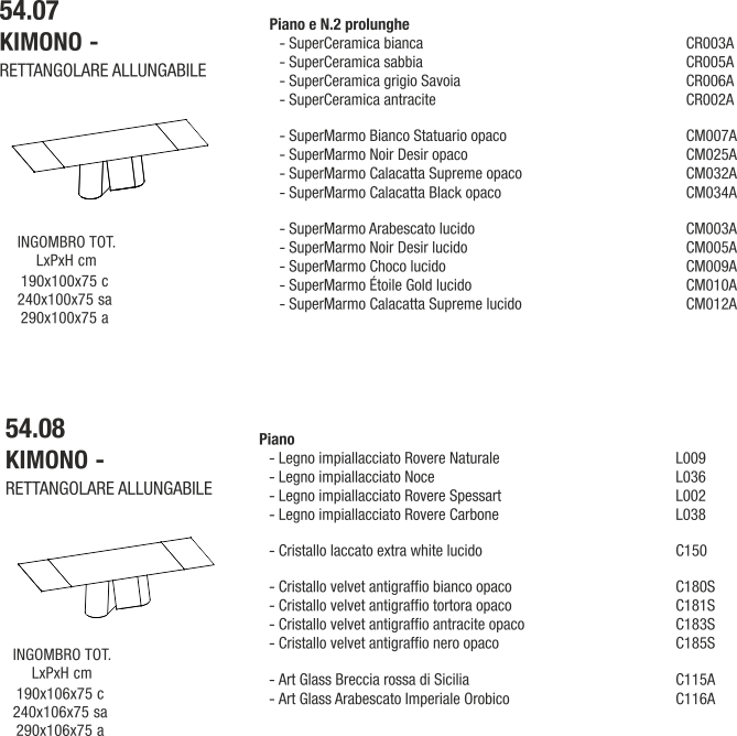 Tavolo rettangolare fisso, rettangolare allungabile, a botte fisso, a botte allungabile con struttura in acciaio laccato. Piano disponibile in SuperCeramica , SuperMarmo, legno impiallacciato, legno massello, cristallo extra-white lucido e cristallo velvet antigraffio.