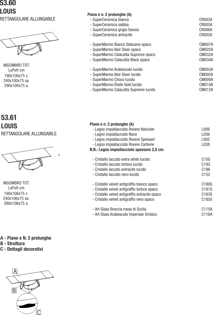Bontempi LOUIS rettangolare 190 |tavolo allungabile|