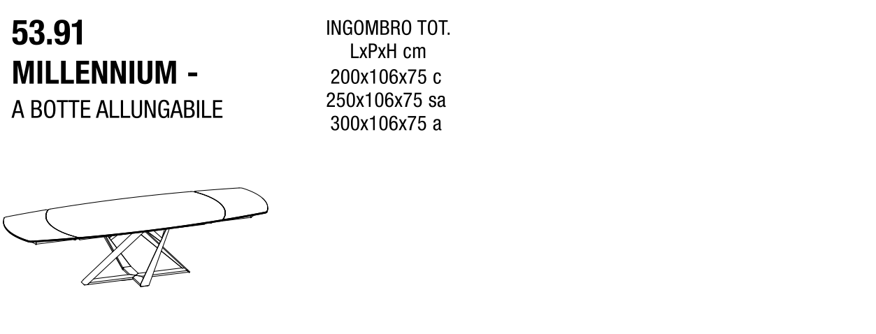 Bontempi MILLENNIUM a botte 200 |tavolo allungabile|