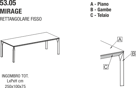 Bontempi MIRAGE 250 Rettangolare |tavolo fisso|
