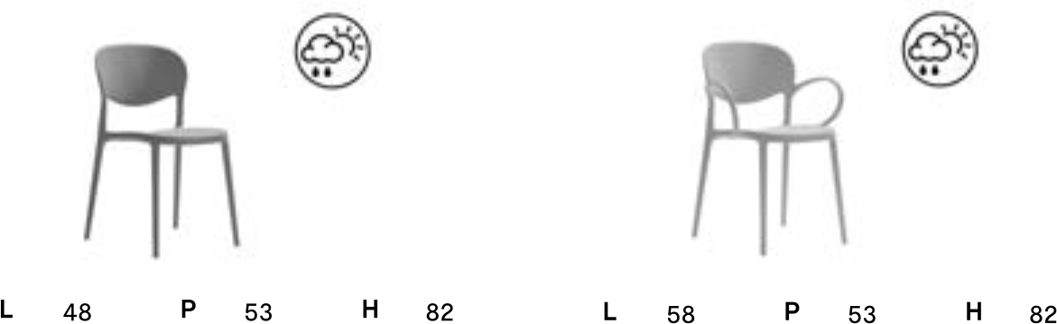 Sedia Abby si presenta con un design classico rivisitato in chiave moderna, forme morbide con un materiale contemporaneo: polipro-pilene 100% riciclato.