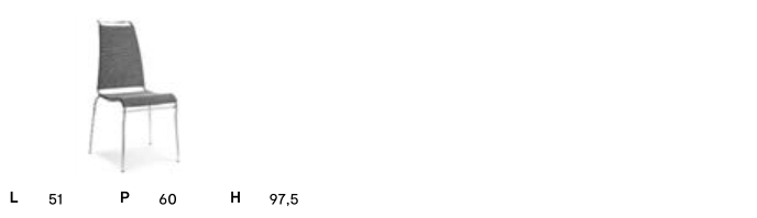 L'utilizzo di materiali all'avanguardia, quali il tubolare di acciaio e la rete sintetica in Pvc/Poliestere NET, hanno permesso di realizzare una sedia resistente, leggera e maneggevole. La cura progettuale delle linee e lo schienale alto e slanciato, la rende inoltre confortevole, ergonomica - la seduta infatti offre un'ottimale postura nell'utilizzo quotidiano - e di design.