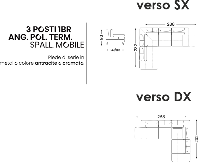 - Profondità seduta:141/113cm