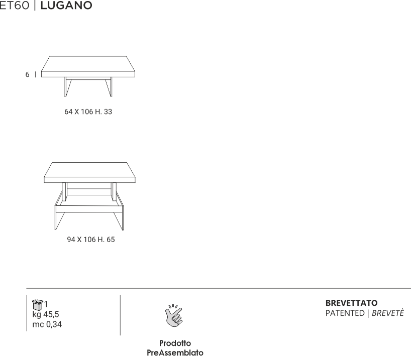 Lugano, tavolino trasformabile dalla duplice funzione. Un utile contenitore per piccoli oggetti e un piano elevabile per un pratico appoggio di fronte a un divano.