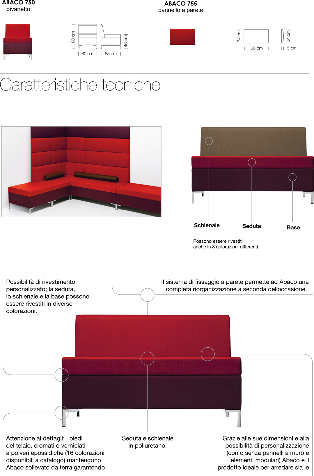 Seduta e schienale imbottiti, rivestimento in tessuto, telaio in tubo acciaio. Sistema sedute multiple, modulo lineare L.60.