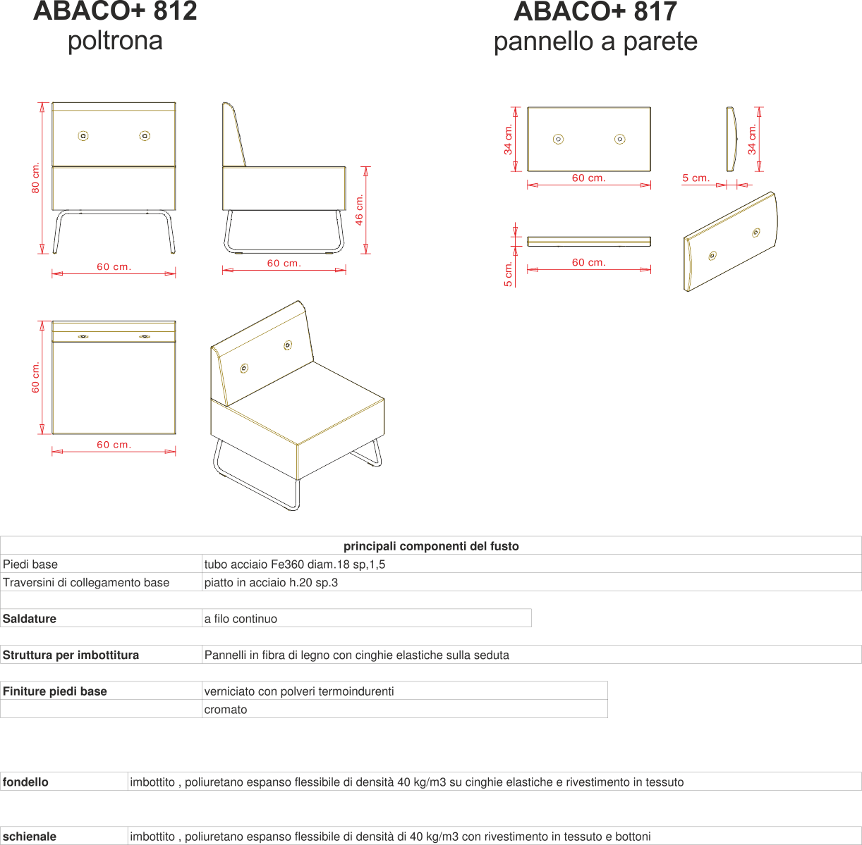 Seduta e schienale imbottiti, rivestimento in tessuto, telaio in tubo acciaio. Sistema sedute multiple, modulo lineare L.60.