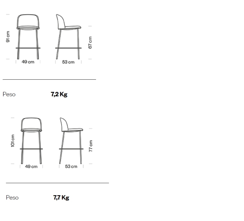 Collezione sgabelli imbottiti, rivestite in tessuto. Telai disponibili in più versioni.