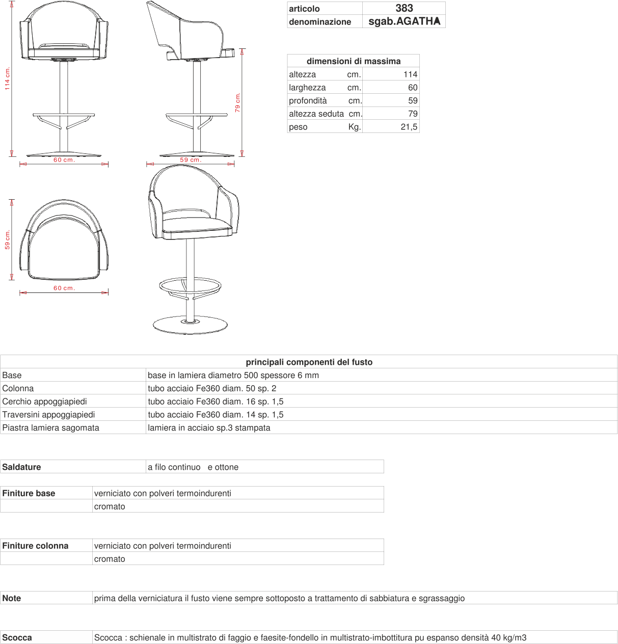 (es. Cat. A FORTIS - Schienale 34 , Seduta 16)