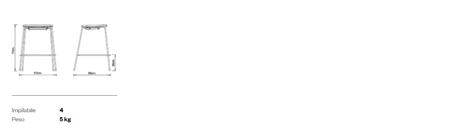 Seduta in polipropilene, schienale in tondino acciaio, telaio 4 gambe in tubo acciaio.