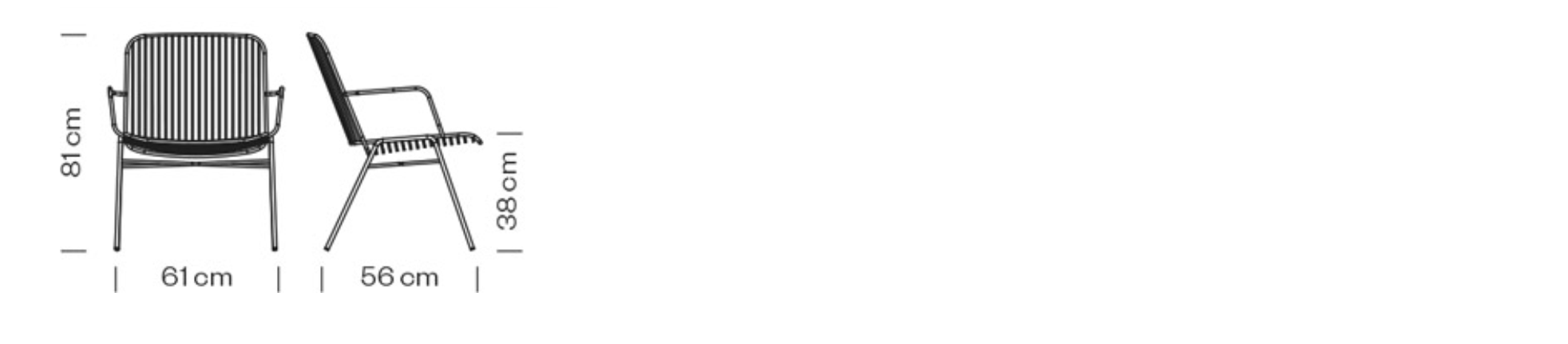 Poltrona lounge con telaio a 4 gambe in tubo di acciaio. Seduta e schienale in tondino d'acciaio.