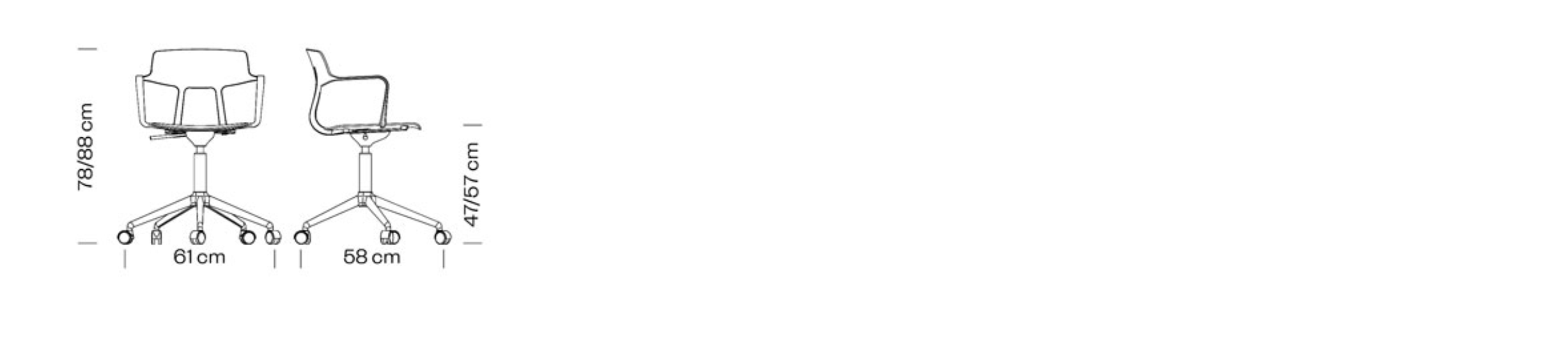 La seduta può essere personalizzata in un'ampia gamma di colori decisi e contemporanei, perfetti per progetti di interni ed esterni ricercati e dinamici e per i grandi ambienti del contract, come sale riunioni, caffetterie e luoghi di ristorazione aziendali.
