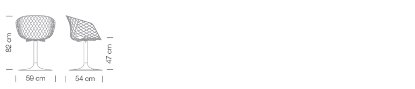 Telaio a basamento centrale in acciaio, girevole. Seduta in polipropilene.