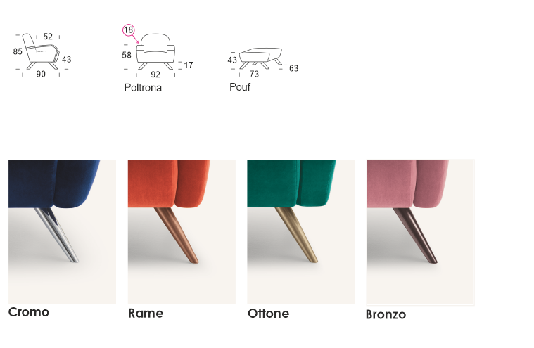 La forma arrotondata dello schienale incontra le linee più squadrate dei braccioli. Clair è il luogo ideale per abbandonarsi al relax, magari immersi in un buon libro, come suggeriscono gli ambienti dalla raffinata impronta industrial di queste immagini. Piede in metallo verniciato con polveri epossidiche e dotato di gommino antiscivolo