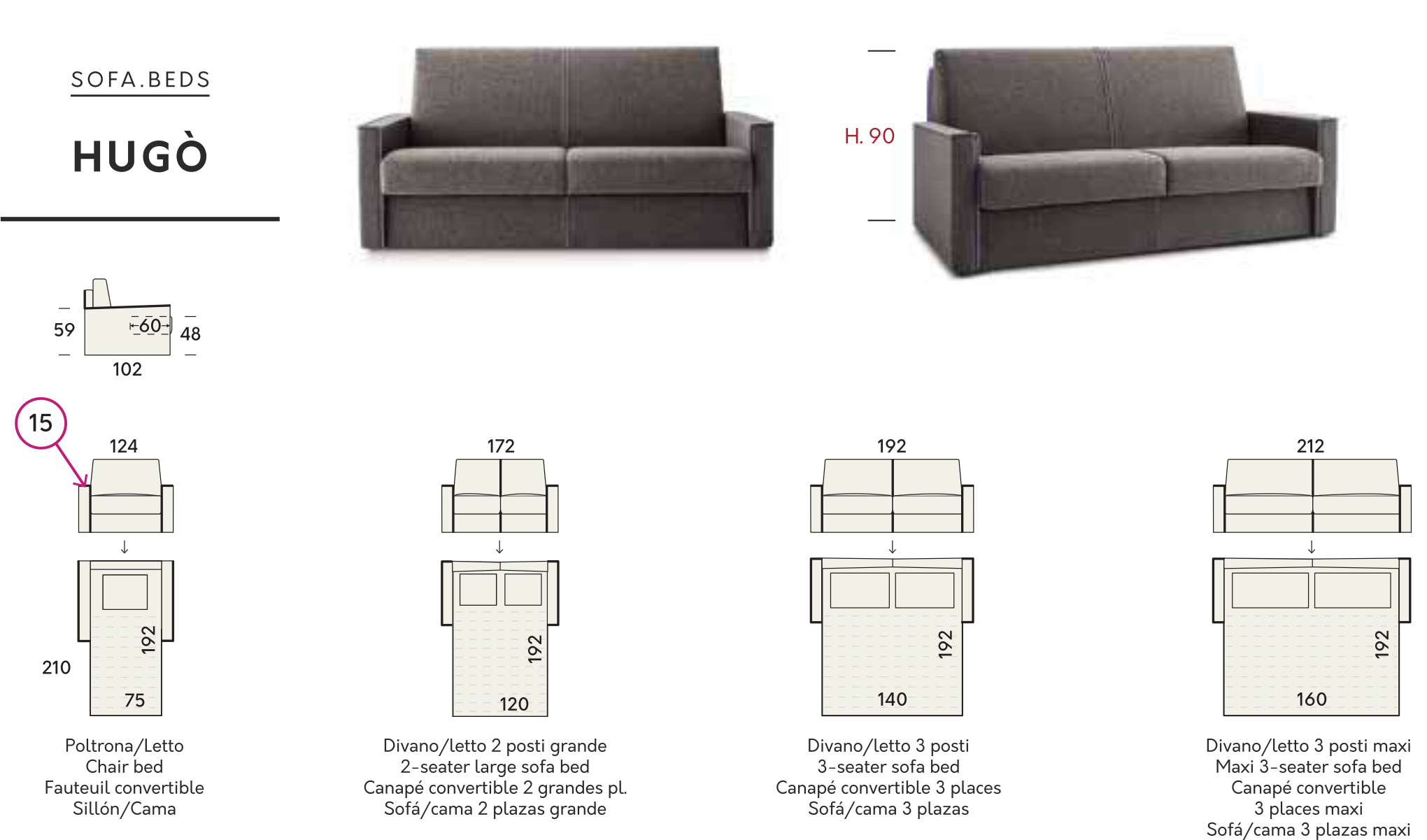 Ideale per una casa moderna, dinamica. Una casa in cui il riposo è sempre generatore di nuove idee e di nuovi inizi. In pochi gesti il divano Hugò si trasforma in un accogliente letto con una testiera imbottita dalla forma originale e divertente.