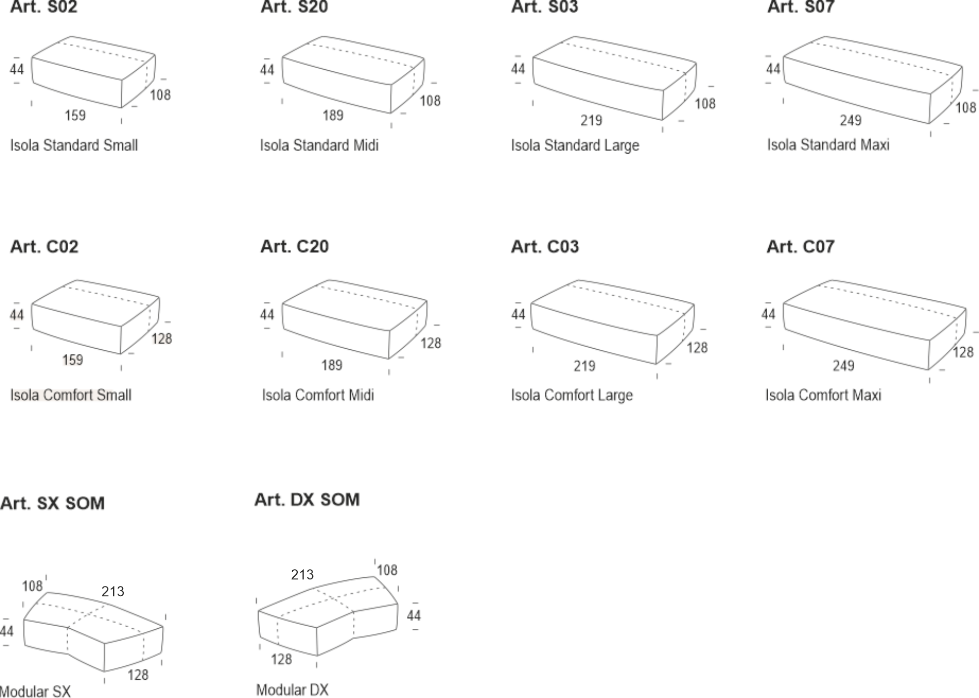 Pouf tavolino e braccioli hanno il medesimo tessuto del divano. Specificare nel campo NOTE eventuale tessuto alternativo