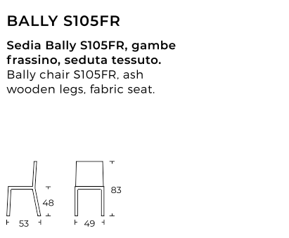 Bally con gambe in legno e seduta in tessuto in diverse varianti colore.