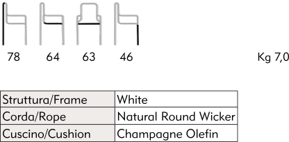 Poltroncina con struttura in alluminio e rivestimento in corda sintetica