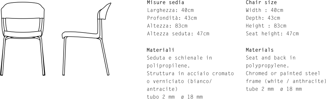 Telaio in acciaio curvato in finitura cromata impilabile e scocca in tecnopolimero, la sedia Evo Strass è intramontabile come un oggetto di design.