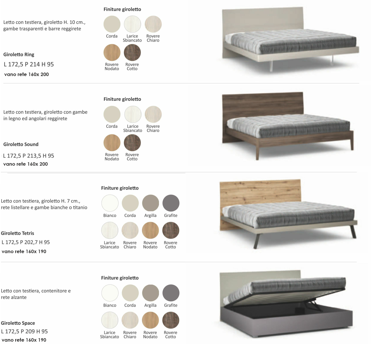 Letto con testiera e giroletto in legno. Disponibile con piedi trasparenti, legno o metallo. Pannelli spessore 2,2cm