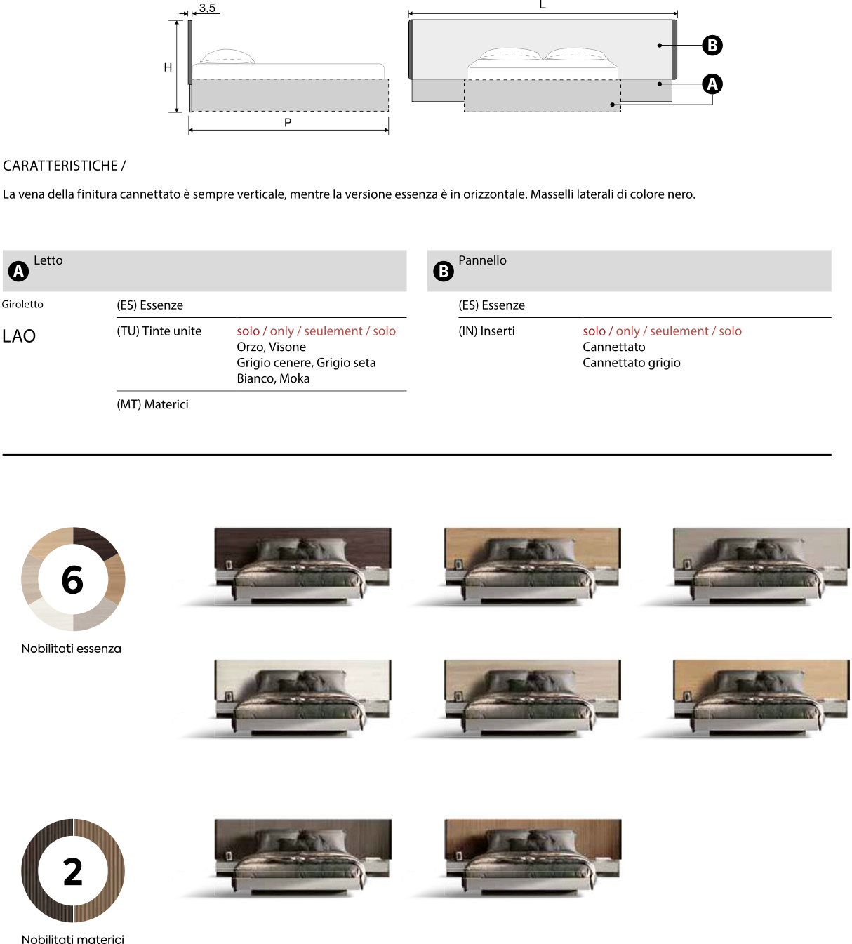 I comodini (accessori) sono realizzati di serie nella medesima finitura selezionata per il letto