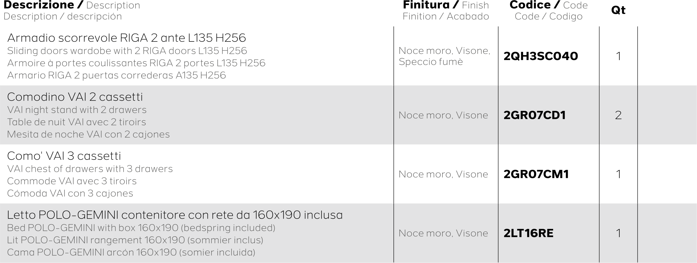 E' possibile modificare le finiture della composizione. Consultare la sezione FINITURE per scoprire le finiture disponibili.