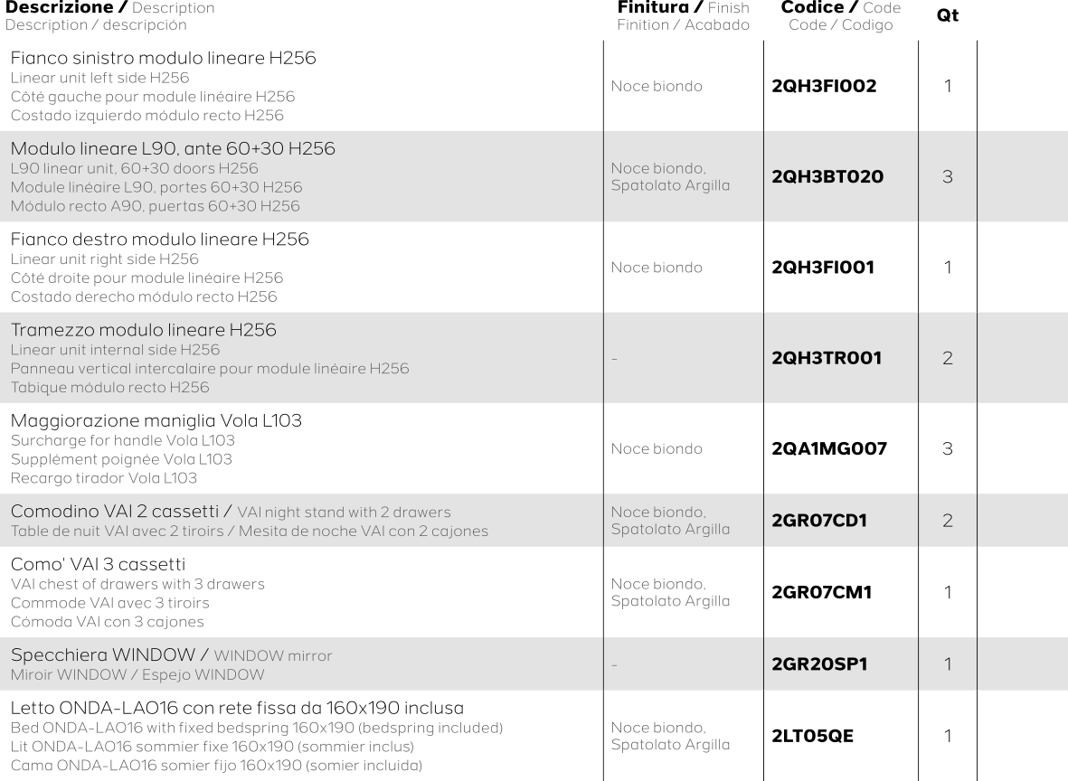 E' possibile modificare le finiture della composizione. Consultare la sezione FINITURE per scoprire le finiture disponibili.