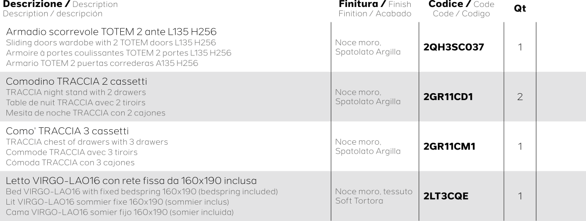 Ideale per ambienti dallo spirito moderno e sofisticato, questa camera da letto è pensata per chi ricerca design, funzionalità e armonia cromatica, con finiture di alta qualità tipiche del design italiano.