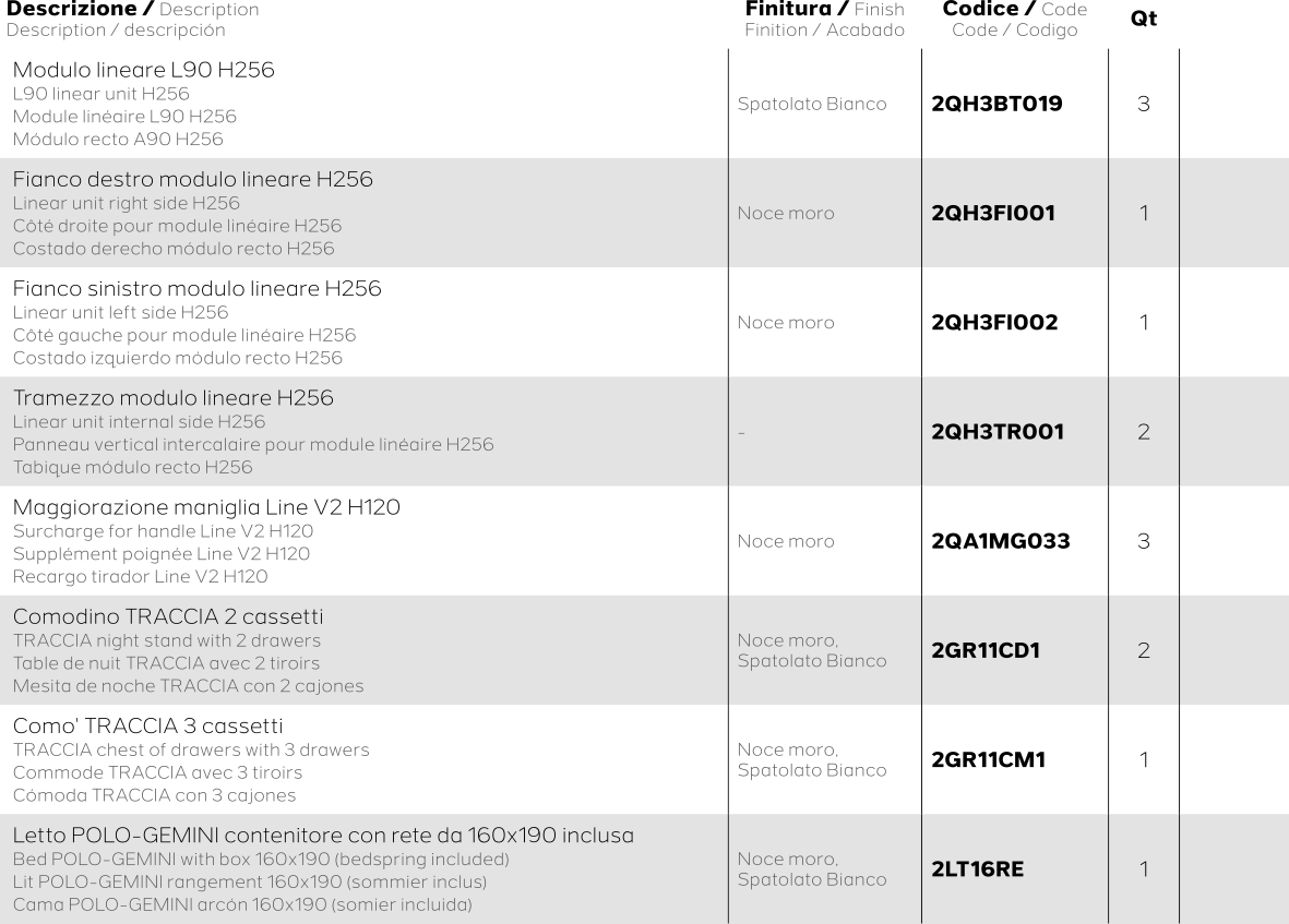 E' possibile modificare le finiture della composizione. Consultare la sezione FINITURE per scoprire le finiture disponibili.