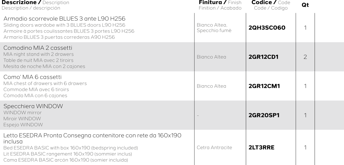 E' possibile modificare le finiture della composizione. Consultare la sezione FINITURE per scoprire le finiture disponibili.