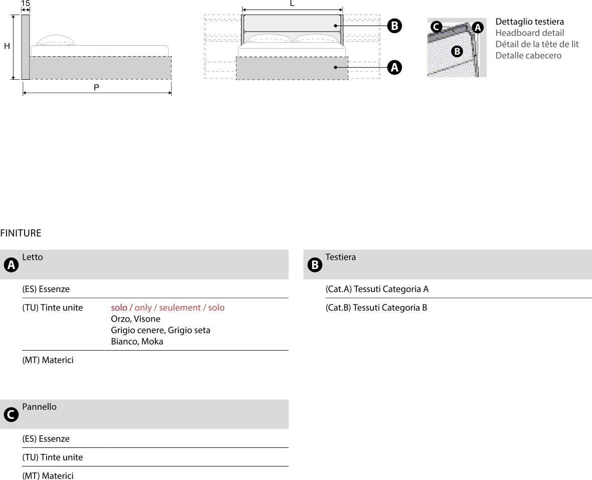 Nelle immagini il letto viene presentato con giroletto contenitore diversamente verrà proposto con i piedini di serie.
