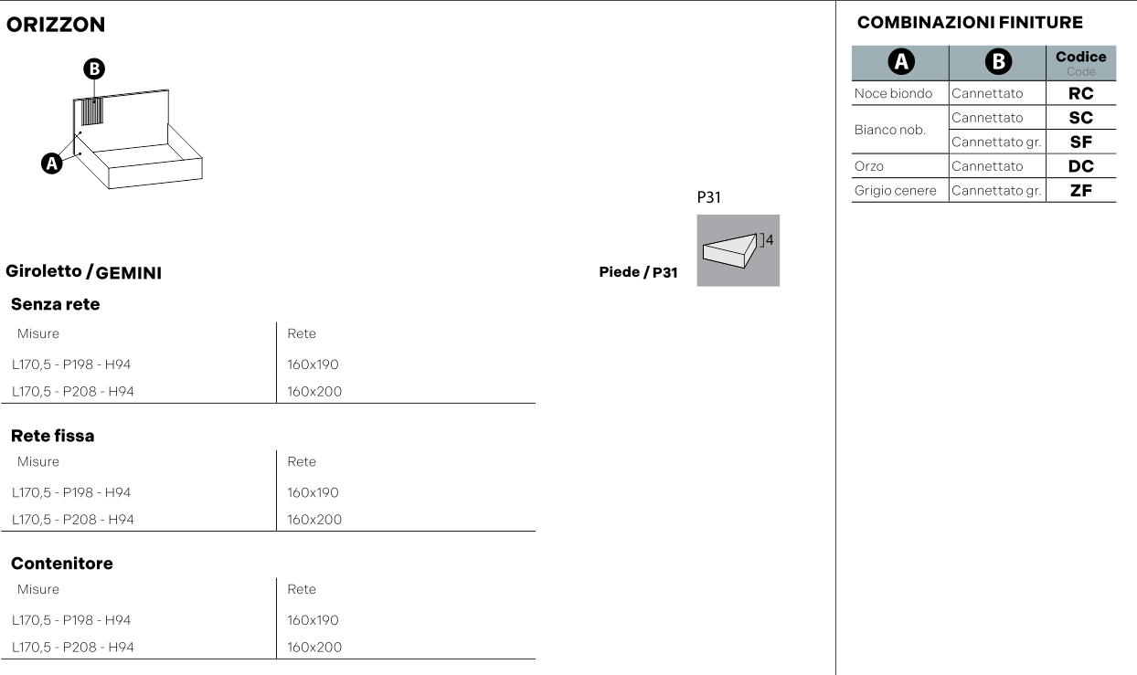 Disponibile con piede P31 e giroletto modello GEMINI, il letto Orizzon si adatta a ogni esigenza di spazio e comfort grazie alle tre configurazioni disponibili: