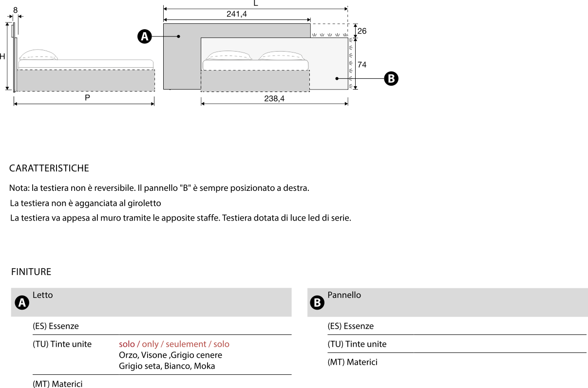 Nelle immagini il letto viene presentato con giroletto contenitore diversamente verrà proposto con i piedini di serie.
