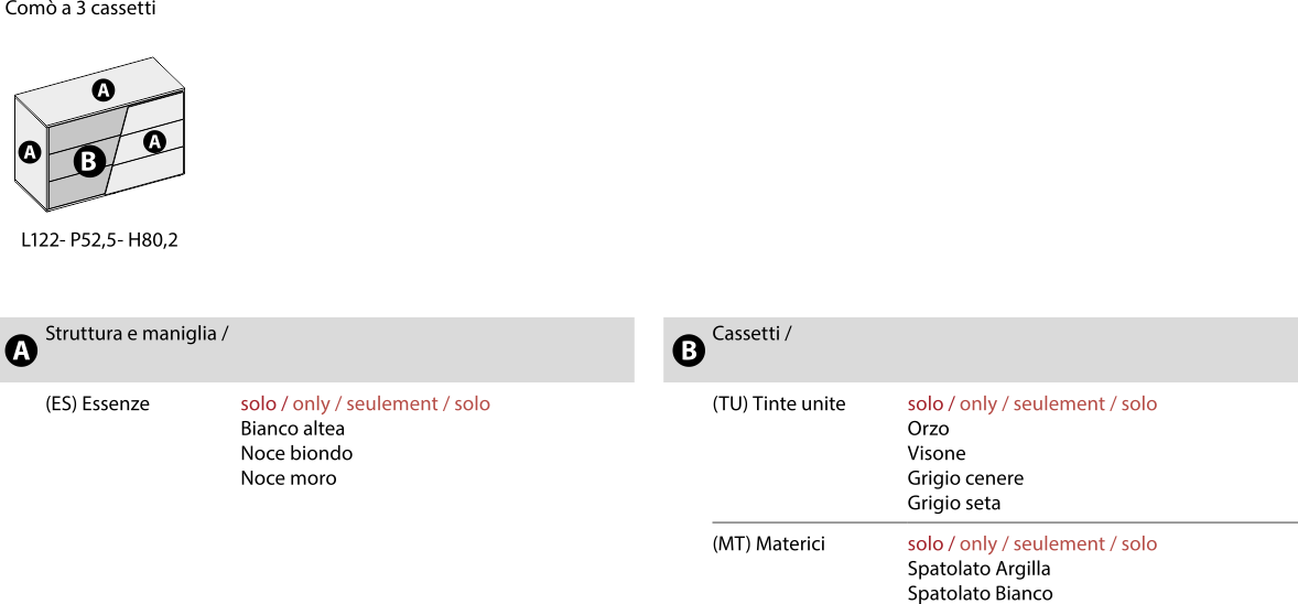 La linea obliqua che taglia in due la superficie frontale degli elementi di questo gruppo crea un effetto dinamico moderno che esalta l’estetica dell’essenza in legno. Comodini e comò disponibili.