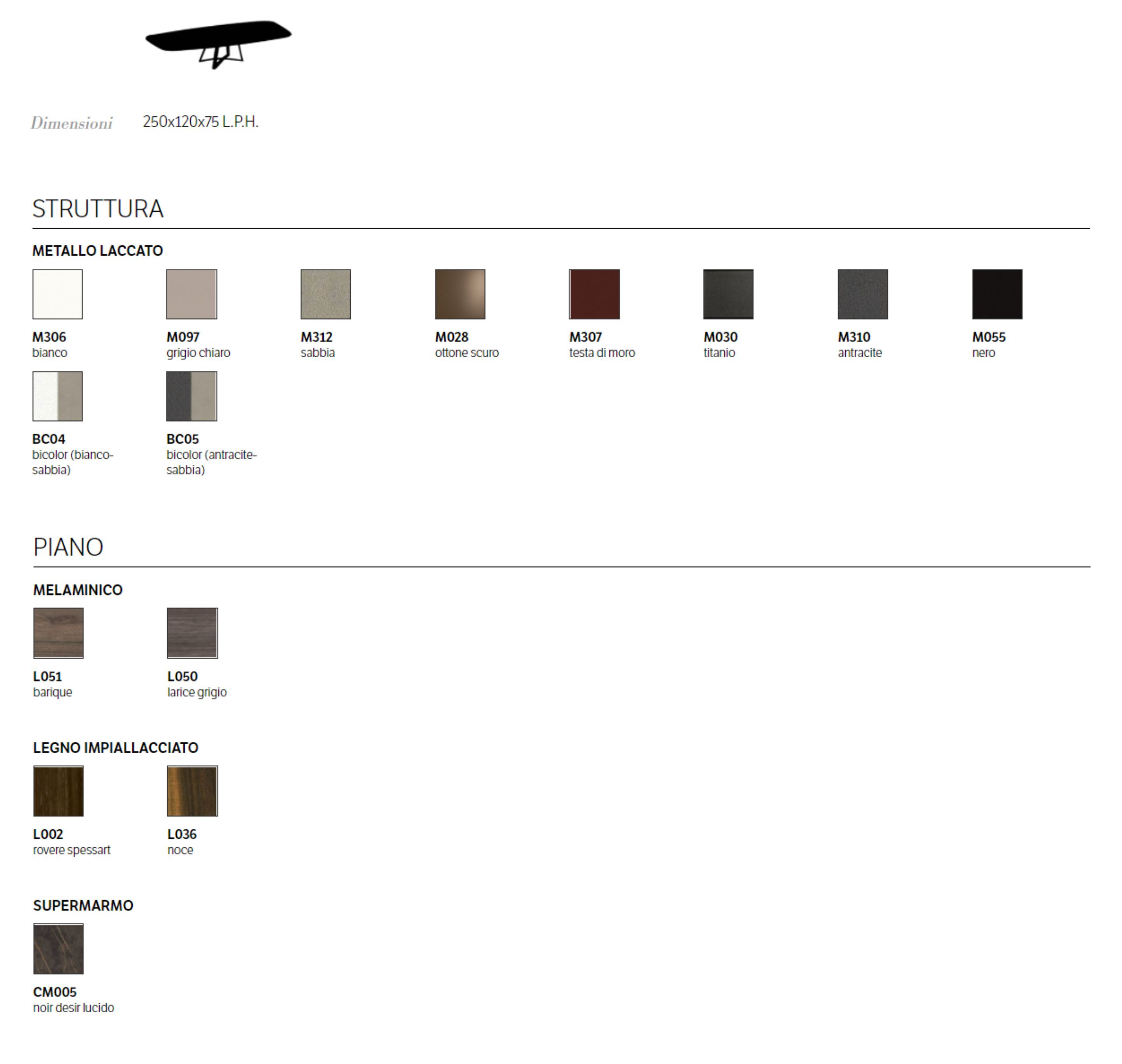 Tavolo fisso a botte con struttura in Acciaio laccato, piano in Melaminico, Impiallacciato e SuperMarmo.