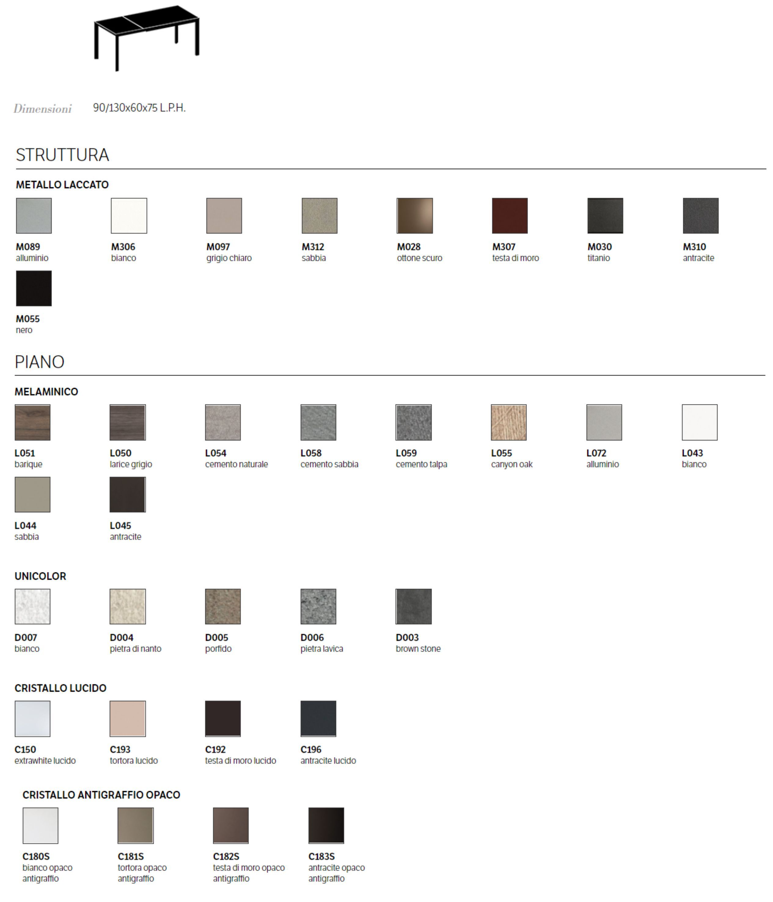 Tavolo allungabile con struttura in Acciaio laccato e piano in Melaminico, melaminico materico, Cristallo, Cristallo Antigraffio e SuperCeramica.