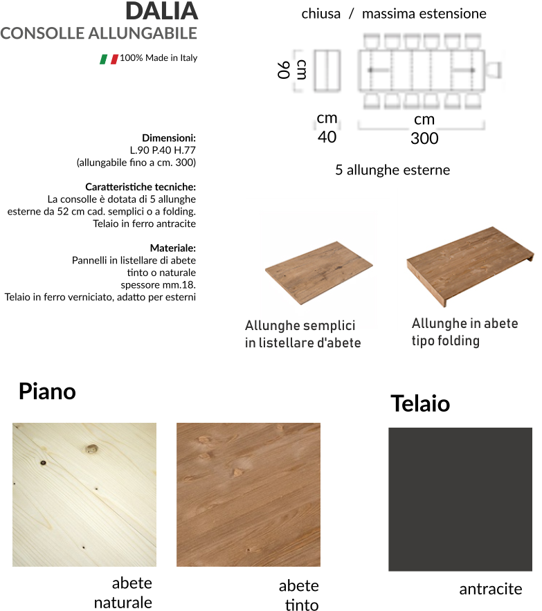 Con l'introduzione di questa nuova linea di consolle, è possibile scegliere il modello di allunghe.