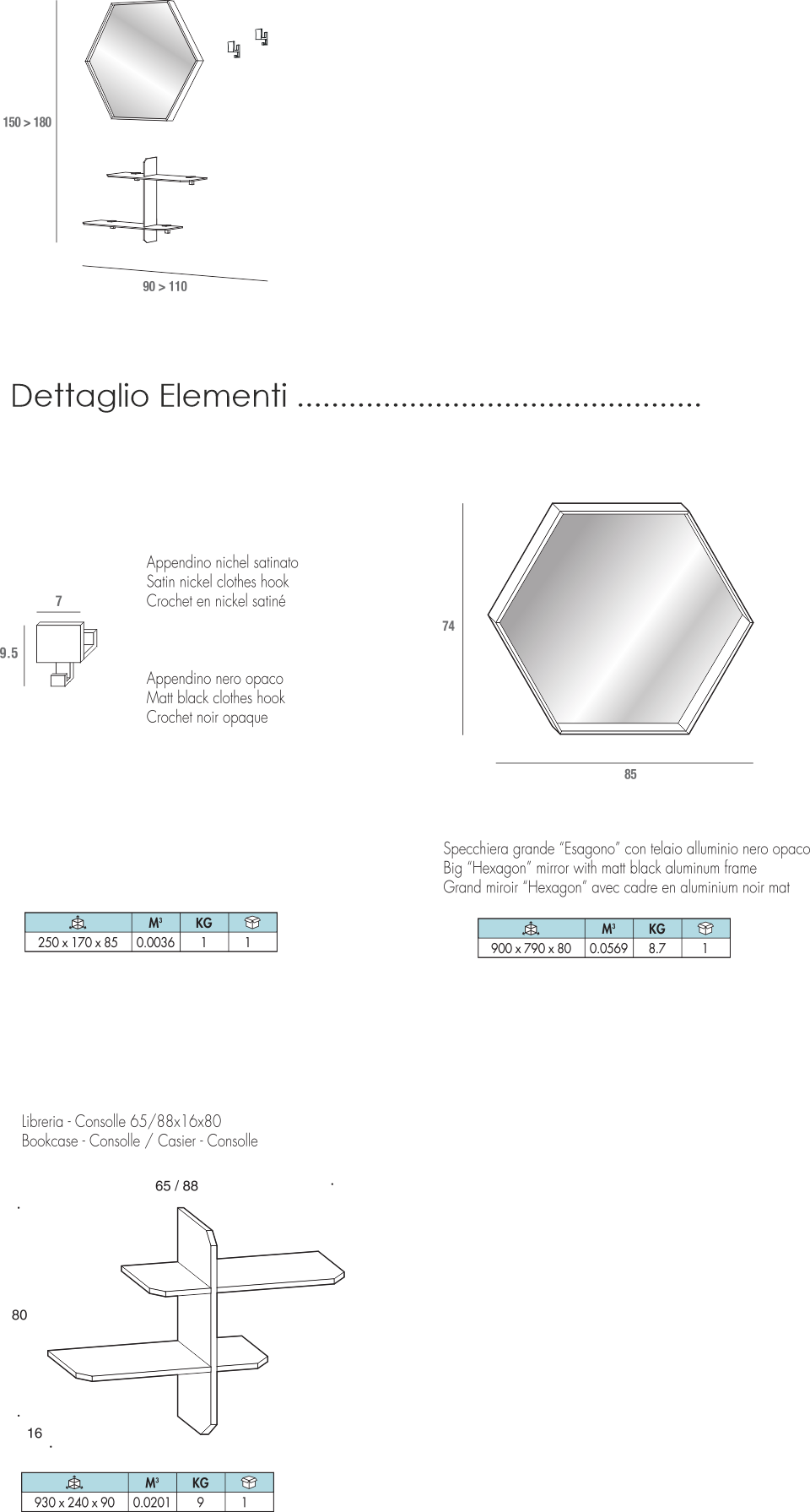 Programma realizzato da mensole in HPL o Fenix stratificato specchiera con telaio alluminio.