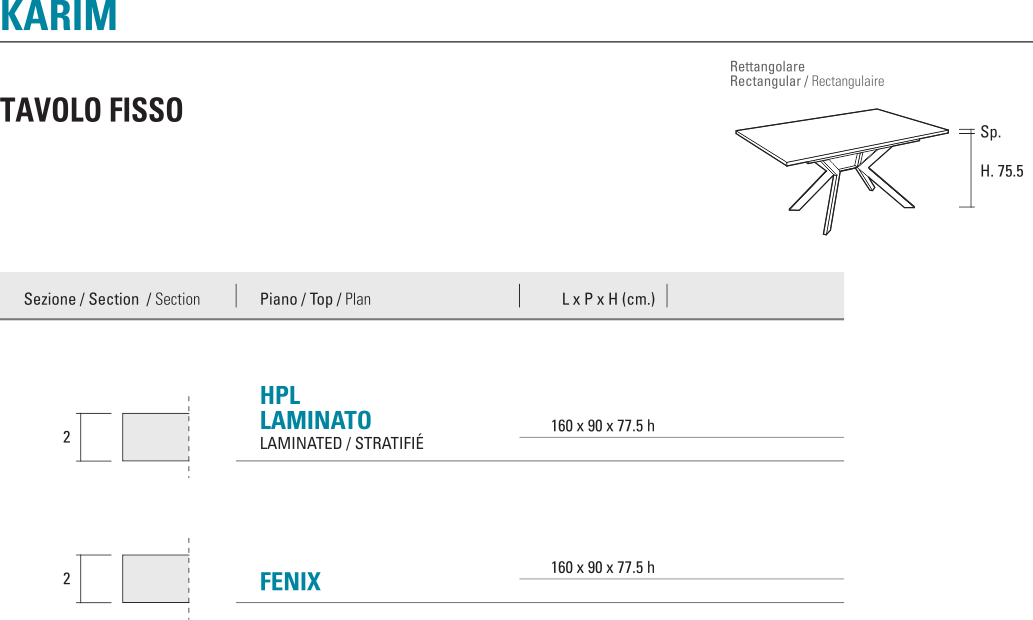 La Primavera KARIM 160 rettangolare | tavolo fisso